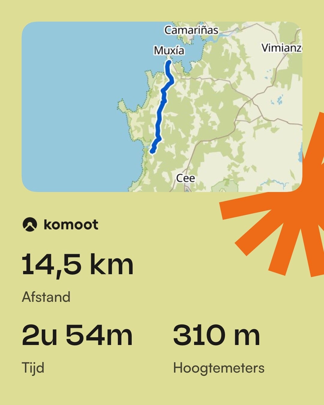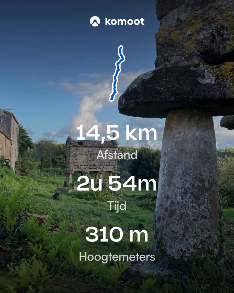 Vertrek uit Muxia bij het aanbreken van de dag,